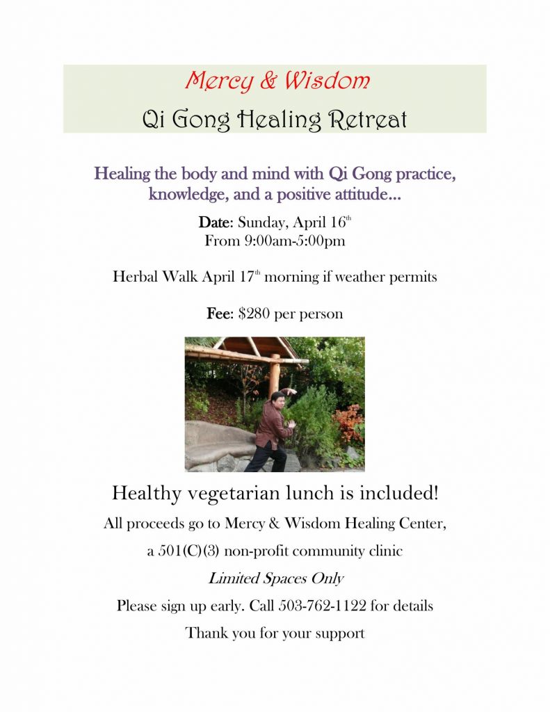 News Release: Come join us for a Qi Gong Healing Retreat and benefit Mercy & Wisdom Community Health Clinic.